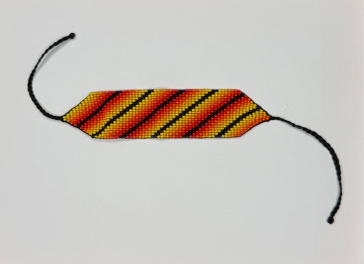 手工宽条纹手链 - 橙色、黄色和红色珠子(Chaquiras)