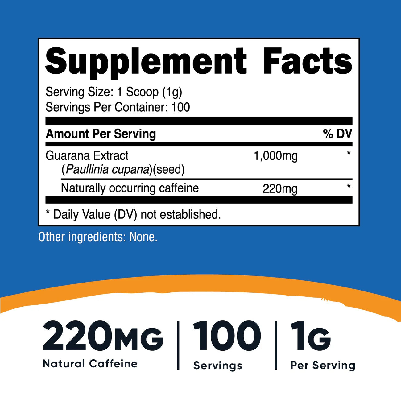 - 每份瓜拉纳含有220毫克天然咖啡因