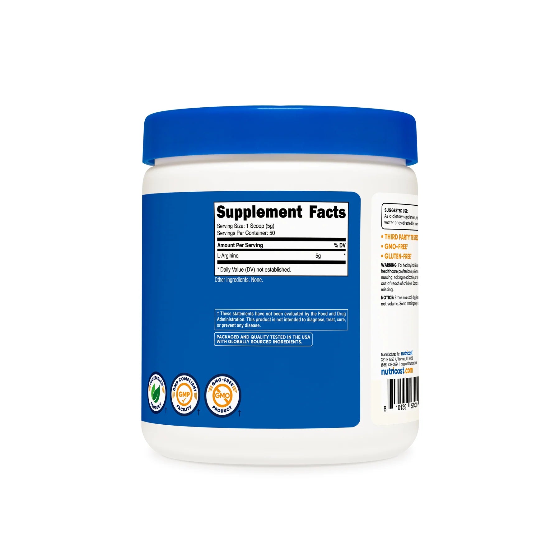 - 每瓶含250克、500克或1公斤L-精氨酸粉末